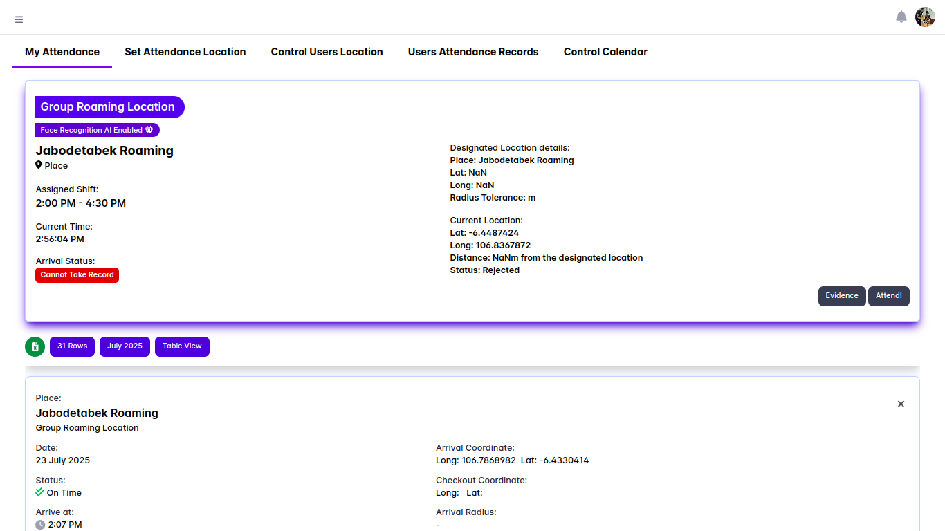 - Radius Tolerance: Defines the acceptable distance (e.g., 5 meters) within which attendance can be recorded.