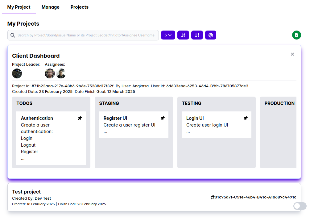 A project represents a specific task or set of tasks assigned to a user within an organization. In this HRIS, users can manage their assigned projects efficiently using a Kanban Board.