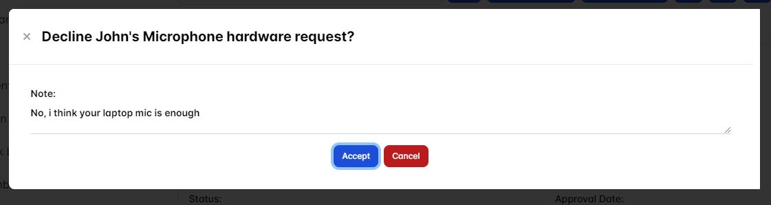 After you've satisfied then click Accept button to decline the user hardware/software request.