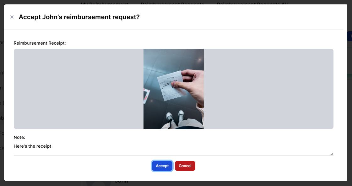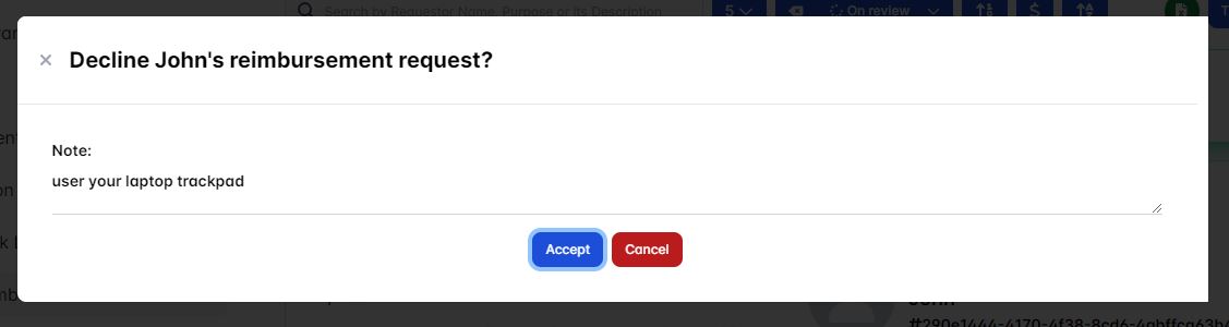 After you've satisfied then click Accept button to decline the user reimbursement request.