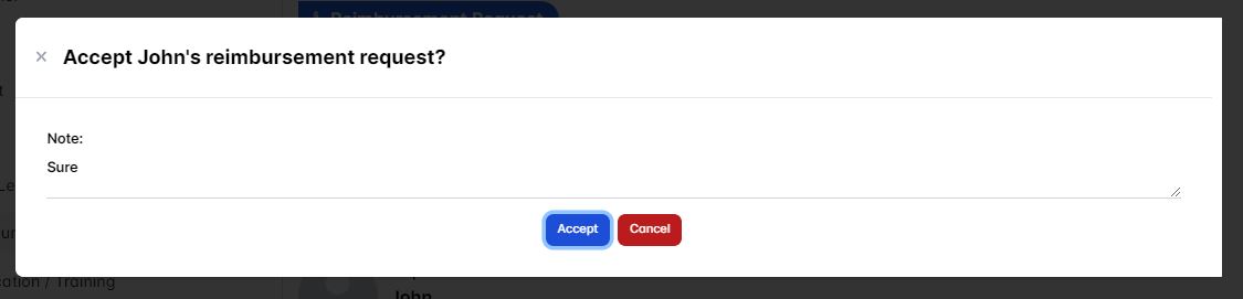 To accept/approve a user reimbursement request requested by a user click the Accept Request button.