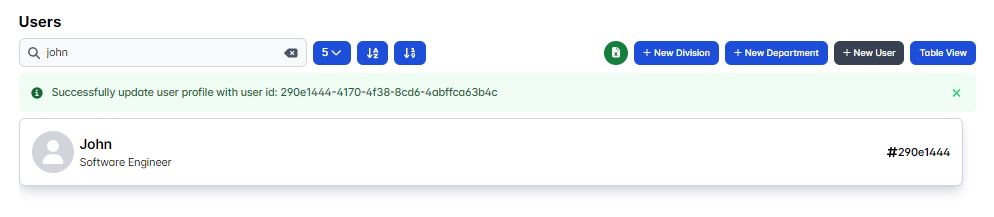 Once you've successfully assigned an existing user account you'll get a pop-up notification indicating that the user account change is success.